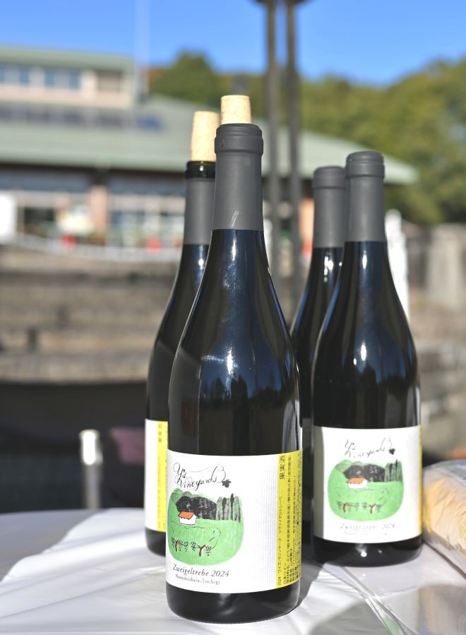 関谷地区にあるY’s Vineyardsのワイン、那須塩原市産のりんごジュース。